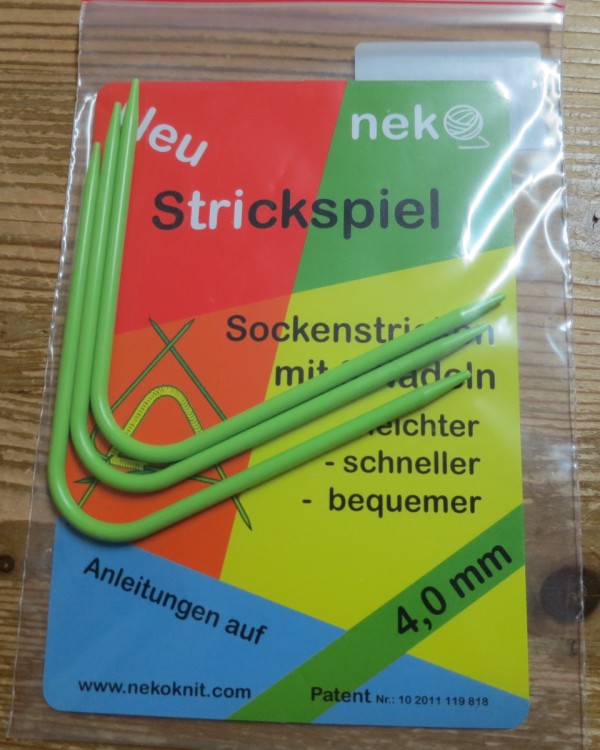 Tak jsem včera brouzdala po netu a objevila něco nového, co samozřejmě časem budu muset vyzkoušet. Jedná se o podivně zahnuté jehlice určené na pletení ponožek, jehlice budou potřeba tři. Asi bych měla napsat Ježíškovi, ale nevím nevím jestli to vydržím: