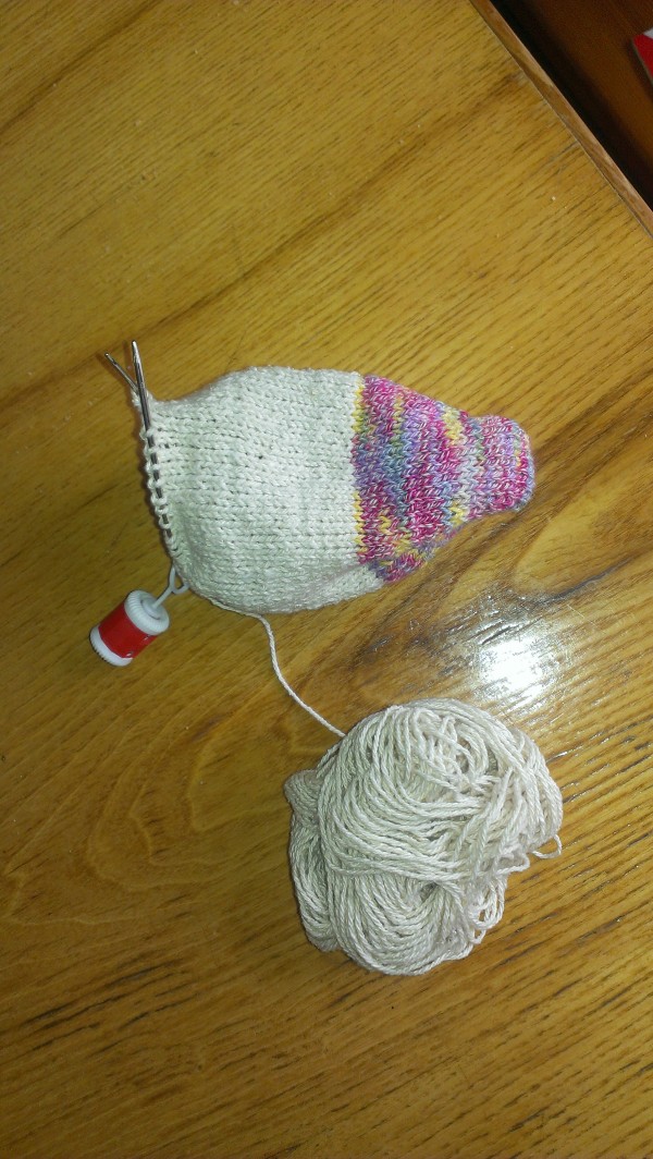 Nejde to tak rychle jako na čtyřech - to může být nezvykem, ale dodělám to na této jehlici - zatím se blížím k patě:-)