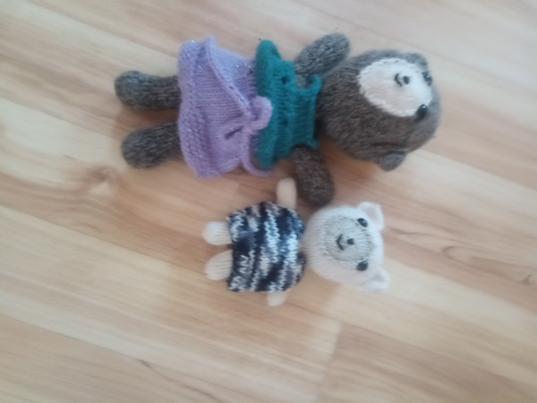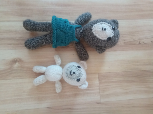 Před nějakým časem se mi dostala do ruky kniha Pletení medvídci od Rachel Borellové. A hned jsem jednoho zkusila. Po nějkaém čase jsem si ji opět půjčila z knihovny chytám se ji koupit a udělat všechny medvědy včetně doplňků – chápu autorčinu závislost. Nejen že to potěší dítko, které hotového medvěda dostane, ale zbavíte se tak i zbytků příze.