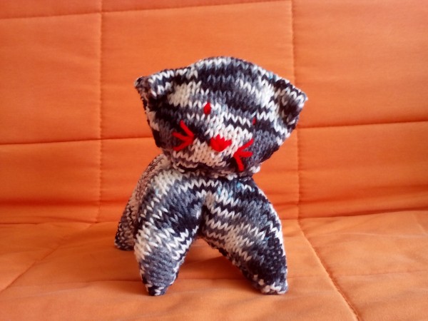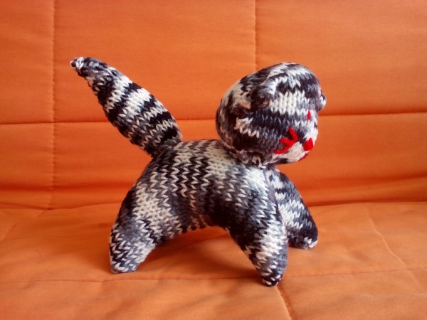 Nedávno jsem objevila návod na kočku - velmi snadný. Kočka je složena ze tří obdélníků, které se všelijak sešívají a prošívají a poté vycpávají aby vznikl tvar kočky. Už jsem udělala tři :-) Myslím že časem jich bude celé stádo....
