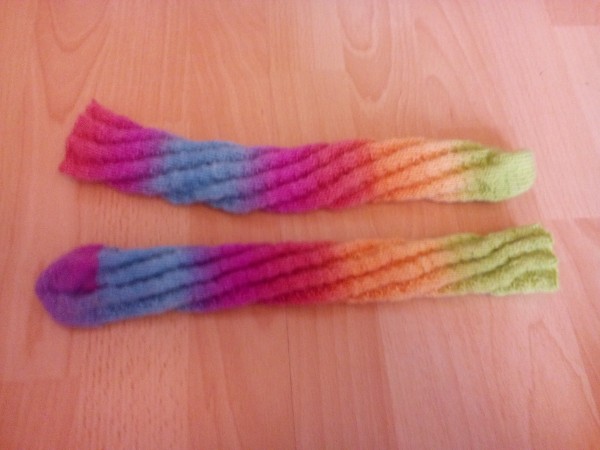 Můj první pokus je hotov, vybrala jsem ten nejjednodušší vzor - ponožky musí být pleteny pružně vzorem který jde do spirály, a hurá na to. Nic složitého mně nečekalo, když jsem se dostala k místu kde by měla být pata pořád jsem zkoušela zda to půjde a šlo to. Ponožky sedí i když absence paty je pro mně nezvyklá. Určitě udělám podobné dětské.